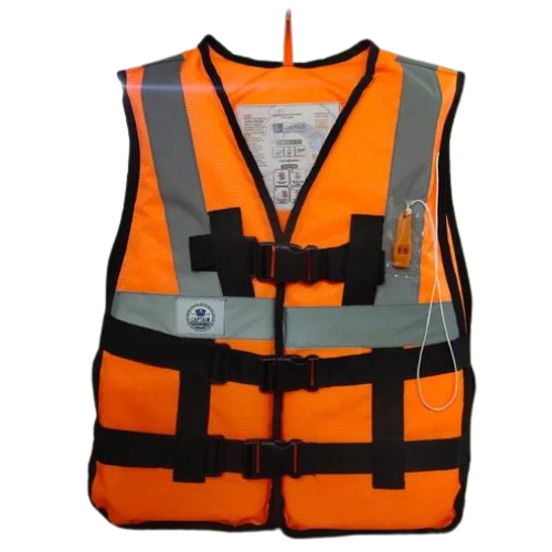 This life jacket is made from durable, water-repellent PU fabric and filled with 100% EPE foam for excellent buoyancy and comfort. It comes with secure webbing belts, an IRS-approved whistle, and reflective tape for added safety. Suitable for chest sizes 40″–60″ and supporting 40–120+ kg, it provides 150N buoyancy. Lightweight, durable, and comfortable, it is perfect for swimming, boating, and sea patrolling.
