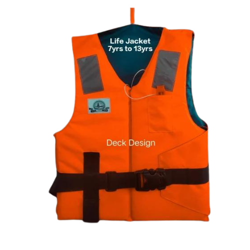 This life jacket is made from high-quality polyester fabric with 100% EPE foam for reliable buoyancy and comfort. It features secure belts, an IRS-approved whistle, and reflective tape for added safety. Designed to fit chest sizes 40″–60″ and support 40–120+ kg, it offers 150N buoyancy. Lightweight, durable, and comfortable, it is ideal for swimming, boating, and sea patrolling.